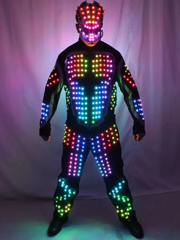 Destaca en cualquier evento con este traje LED de alta tecnología, diseñado con tiras LED antioxidantes que ofrecen una amplia gama de colores RGB. Sus efectos luminosos permiten ajustar el brillo, la velocidad y el parpadeo secuencial para lograr un espectáculo visual único. Disponible en tallas desde S hasta 4XL, el conjunto incluye traje, pantalones, gafas LED, control remoto y caja de batería. Perfecto para actuaciones, fiestas o presentaciones en salones de baile, este traje garantiza un estilo vibrante y lleno de energía.